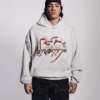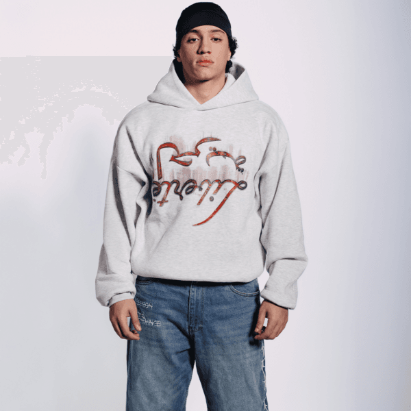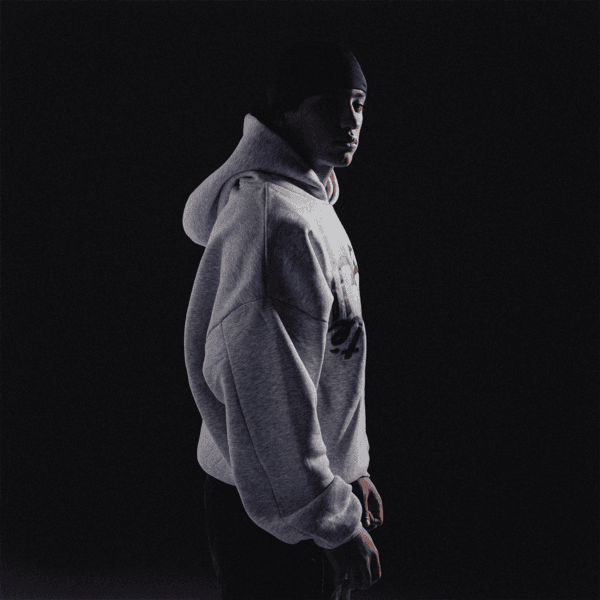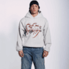 -Oversized cropped relaxed fit-Grey heavyweight cotton fleece -80% Cotton 20% Polyster-Dropped shoulders-Structured double-layer hood-Front graphic print-Clean front with hidden kangaroo pocket-Unisex